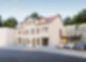 Multi-family residential building on a hill, currently under construction, featuring three modern apartments, including one maisonette, with on-site parking.